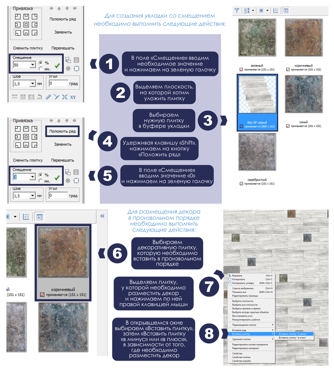 - Как положить плитку со смещением и добавить декор в произвольном порядке?