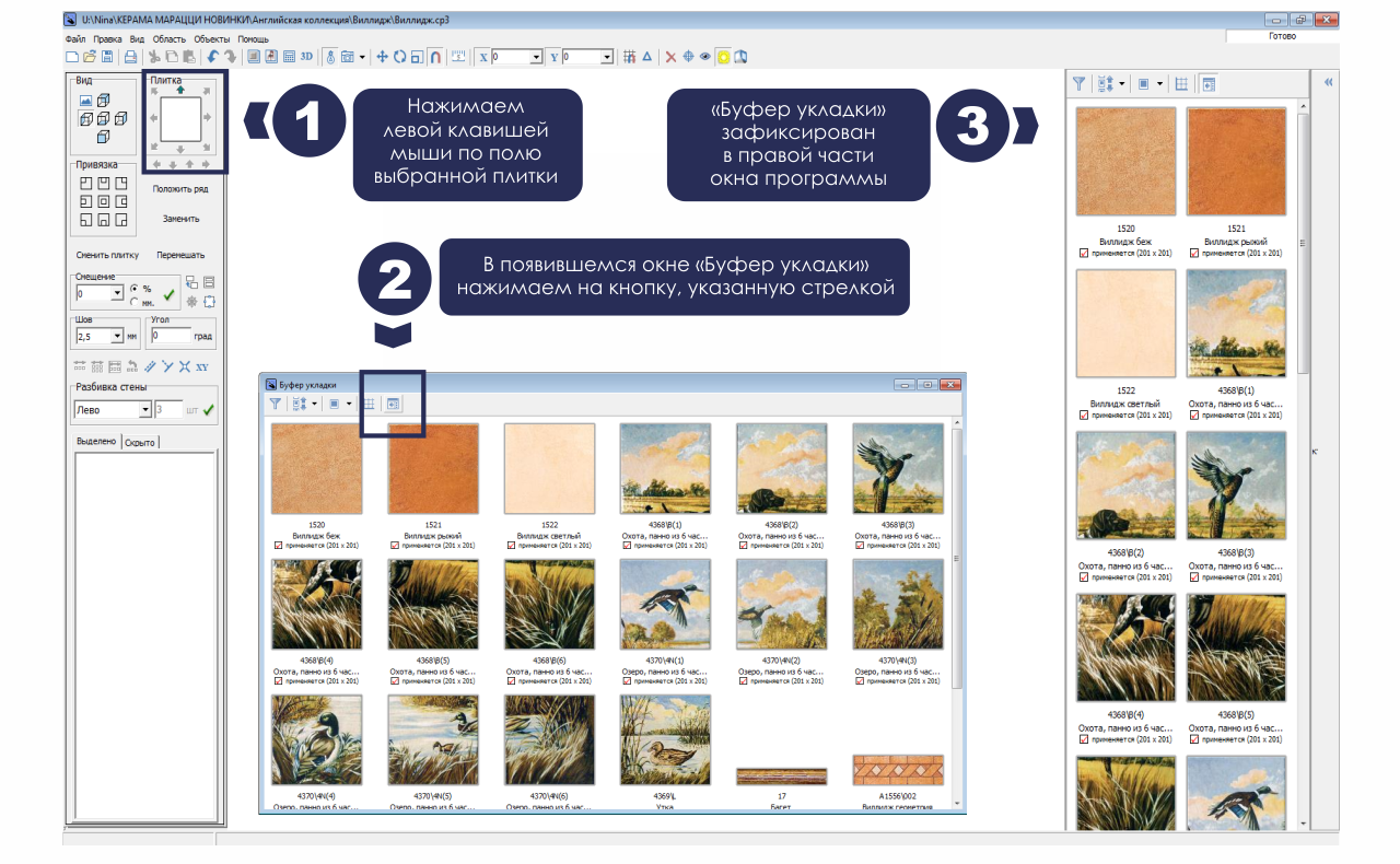- Нет панели справа с плиткой. Как вернуть буфер укладки?