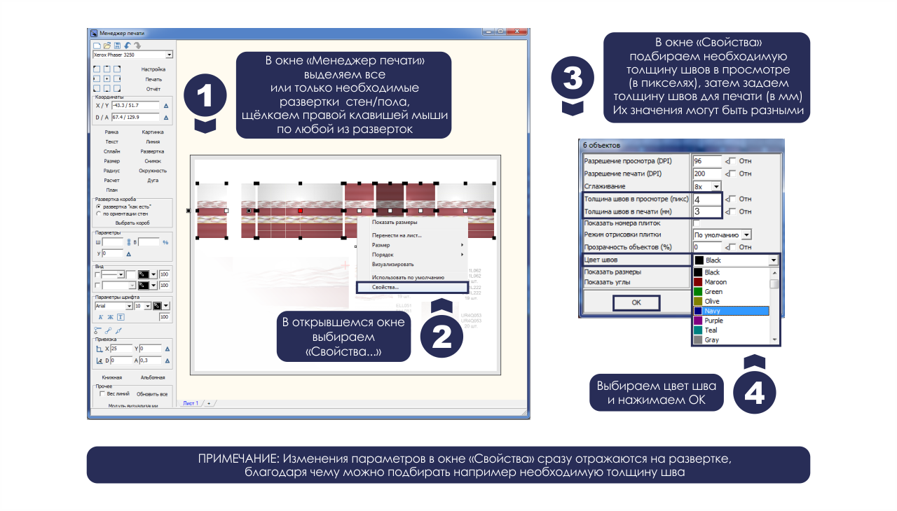 - Как показать швы плиток при создании развертки?